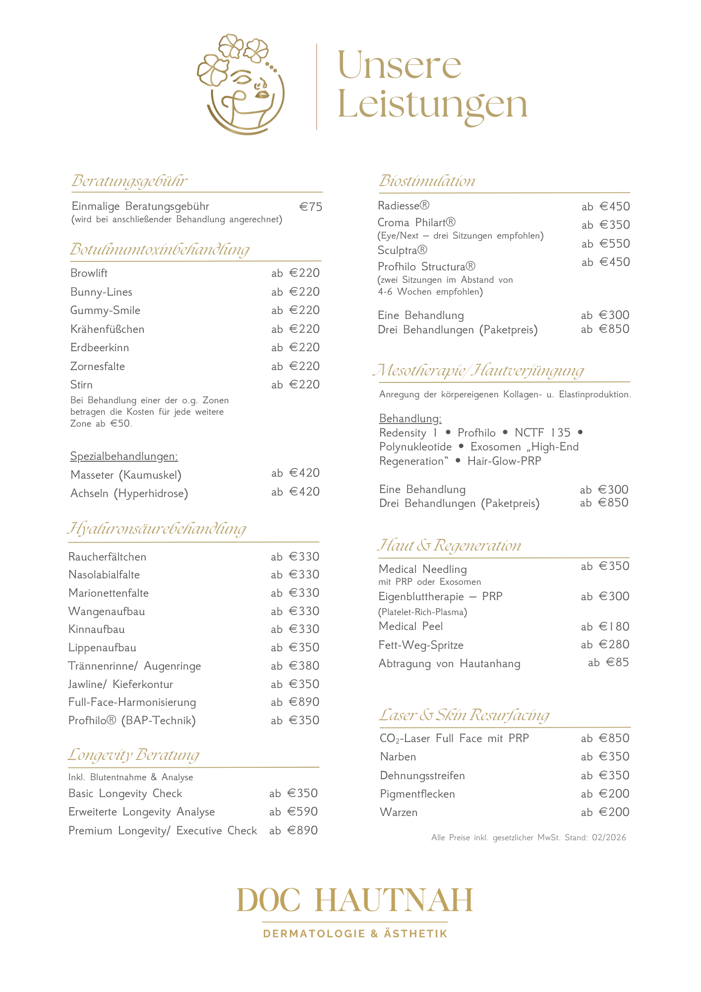 Die Beratungskosten werden bei einer späteren Behandlung vollständig angerechnet. So profitieren Sie von unserer Erfahrung in Dermatologie und ästhetischer Medizin – ohne Verpflichtungen.